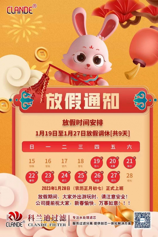 科蘭迪過(guò)濾2023年春節(jié)放假通知