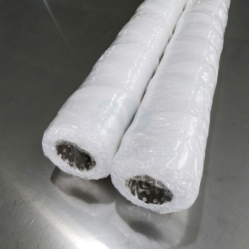 PP纖維線纏繞濾芯是利用自動化機械設備設定好的纏繞次數和花紋數量,將PP聚丙烯紡織纖維線纏繞在不銹鋼多孔骨架上面制作而成,纏繞的過程中中間區(qū)域纏繞的精密濾芯外圍區(qū)域纏繞的疏松從而形成梯度式的過濾精度。此制作工藝提高過濾效率增加了濾芯納污能力使用得濾芯有更長的使用壽命。