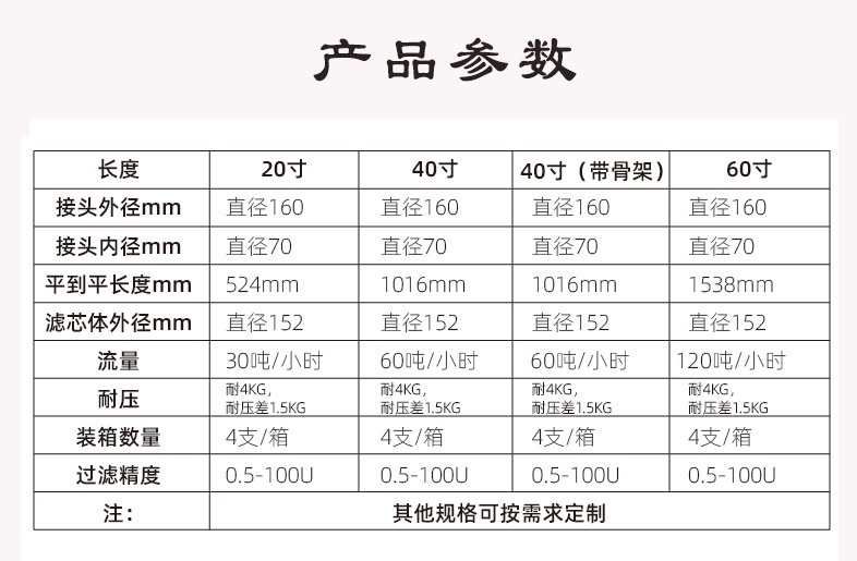 濾芯過濾等級多樣,1-100um/微米多種選擇